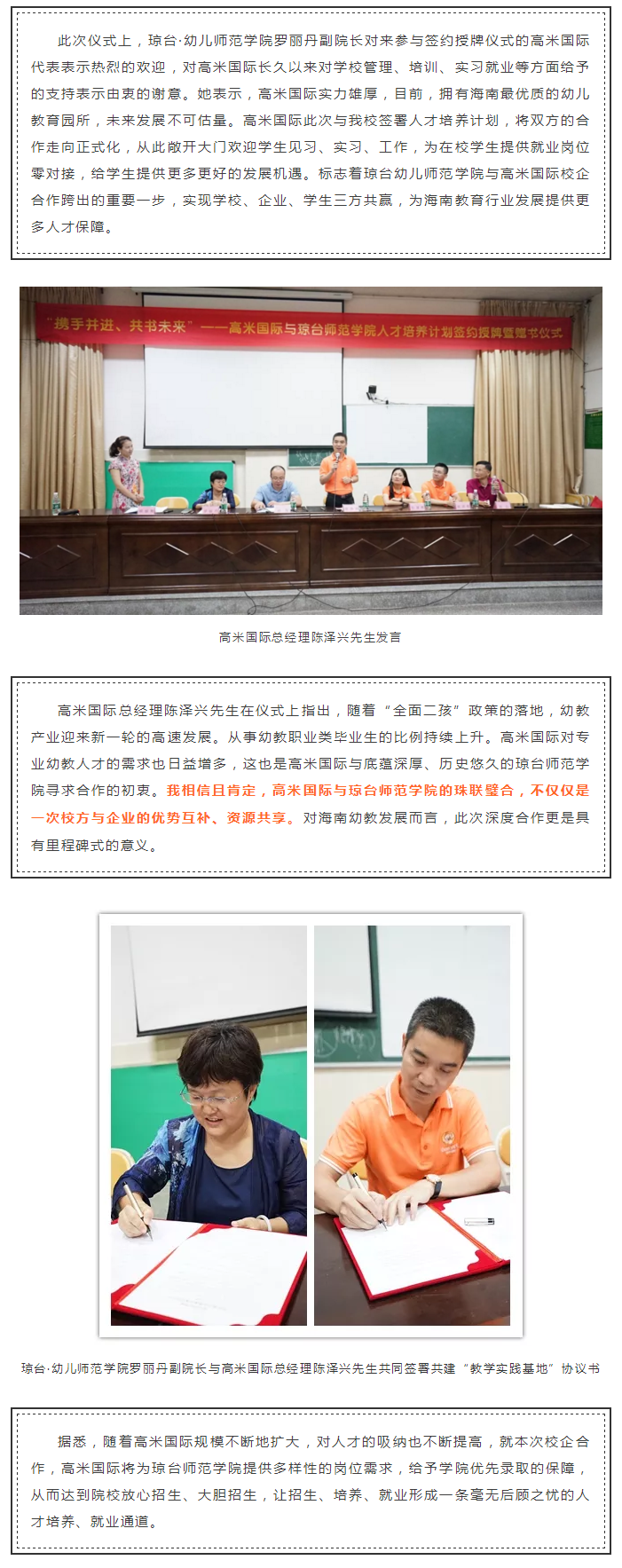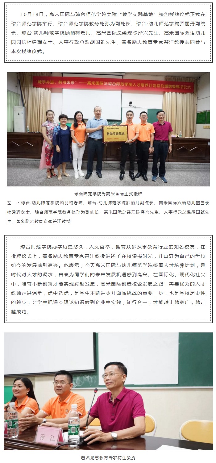“携手并进、共书未来”——高米国际与琼台师范学院举行“教学实践基地”签约授牌仪式