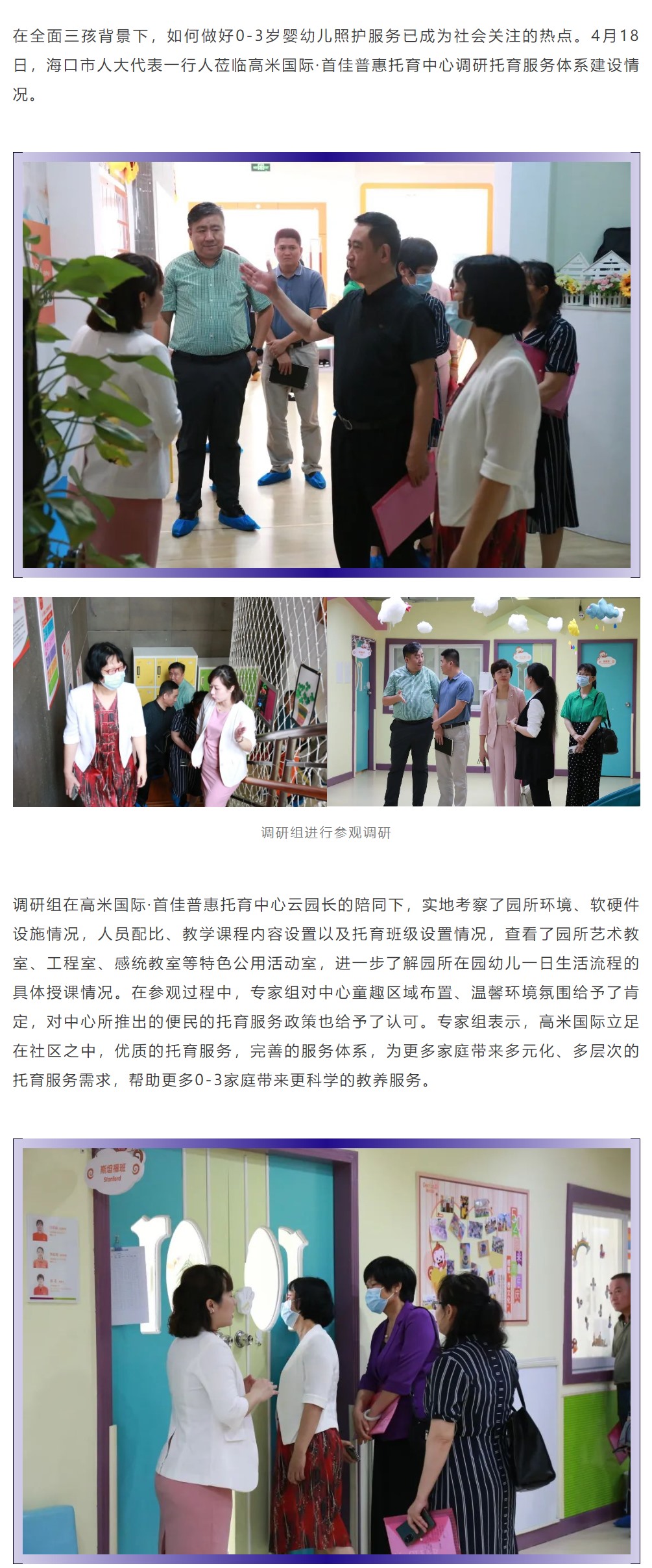 海口市人大代表一行莅临高米国际·首佳普惠托育中心,调研托育服务体系建设情况