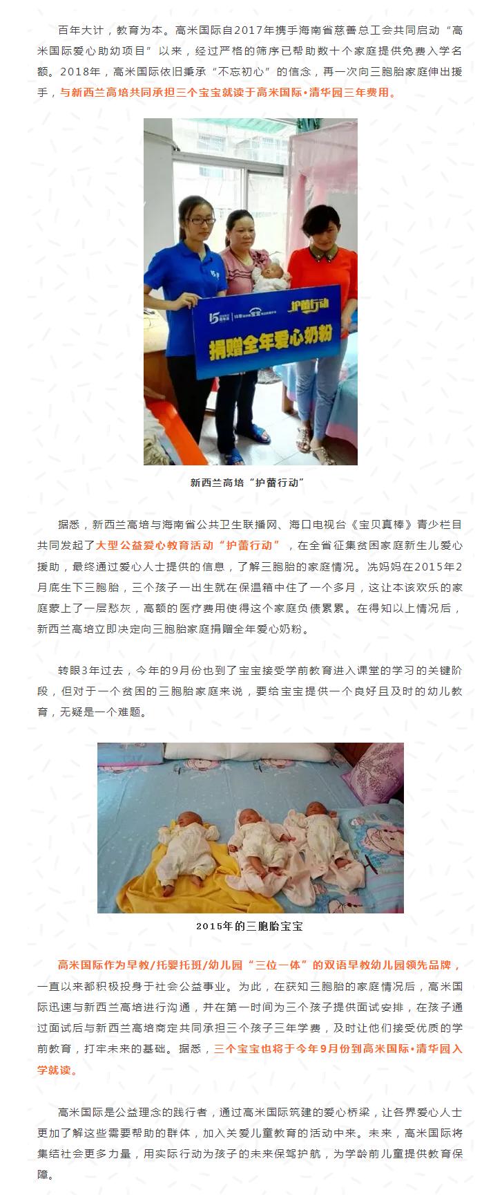 爱心助力!高米国际携手新西兰高培共同为贫困三胞胎资助3年学费