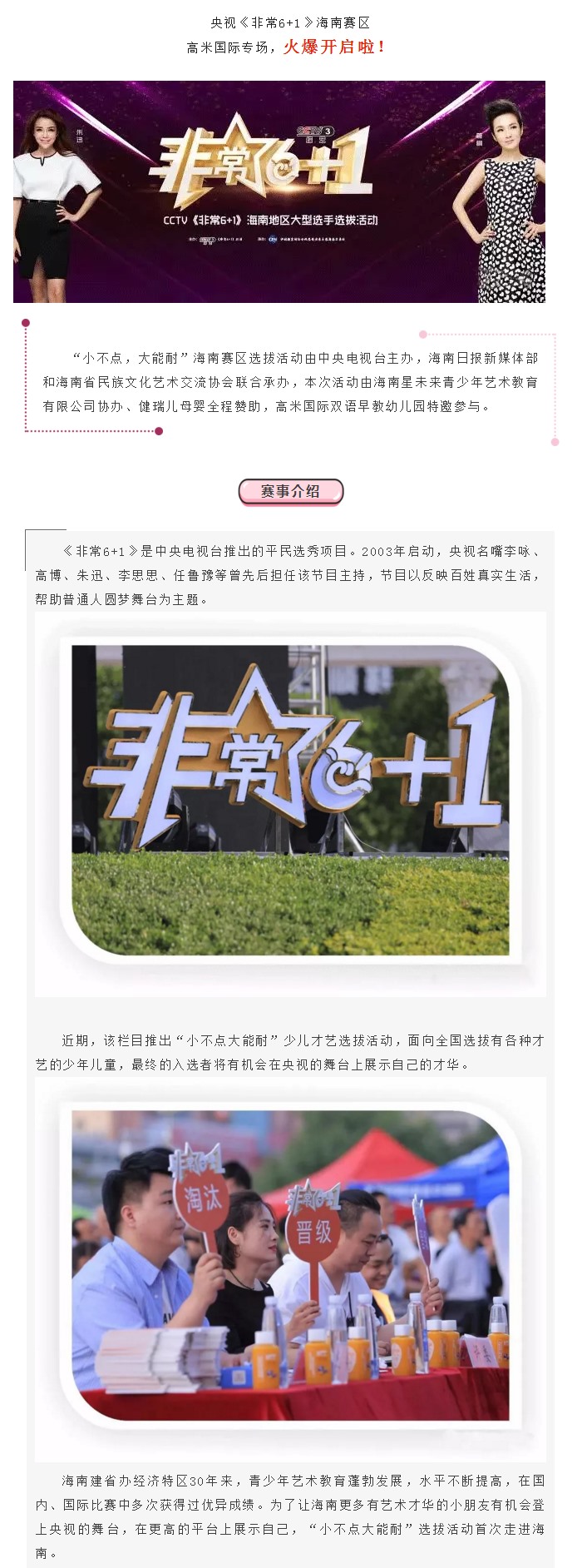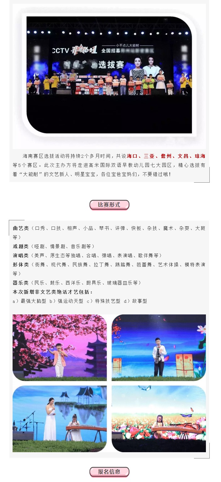 央视《非常6+1》来海南选拔才艺小达人啦!明星宝宝们,不要错过!