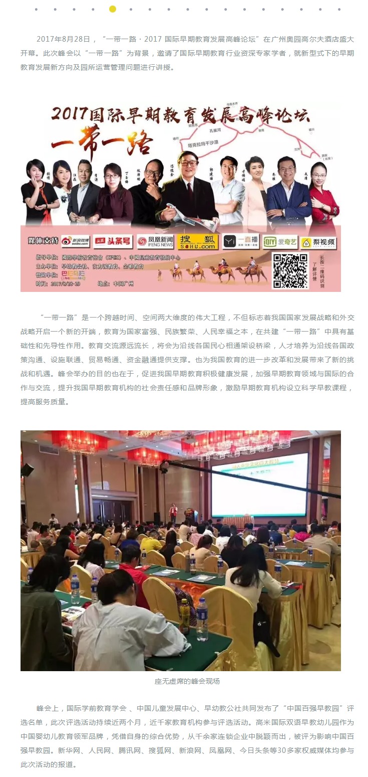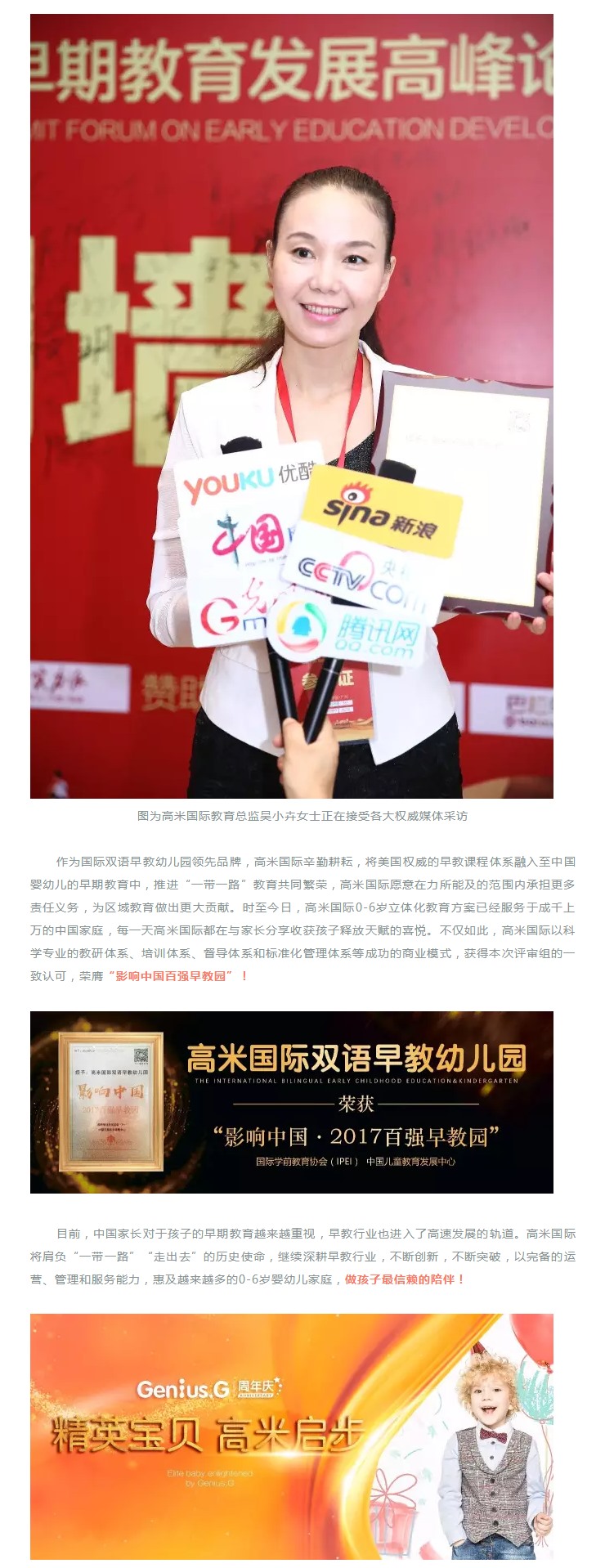 高米国际双语早教幼儿园荣膺“影响中国百强早教园”
